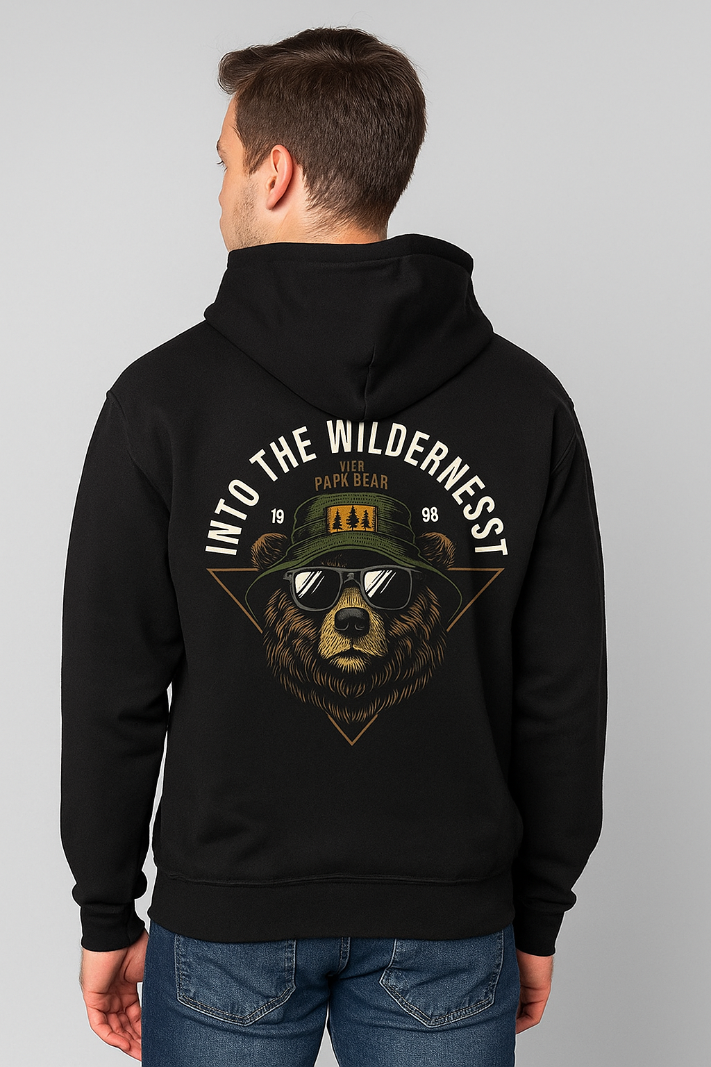 Step into the wild with our black hoodie featuring the bold “Into The Wildernesst” bear design on the back. Crafted from premium fabric, this hoodie combines streetwear style with outdoor adventure vibes. Perfect for casual wear, travel, or making a bold fashion statement, it keeps you warm while showcasing your unique personality.