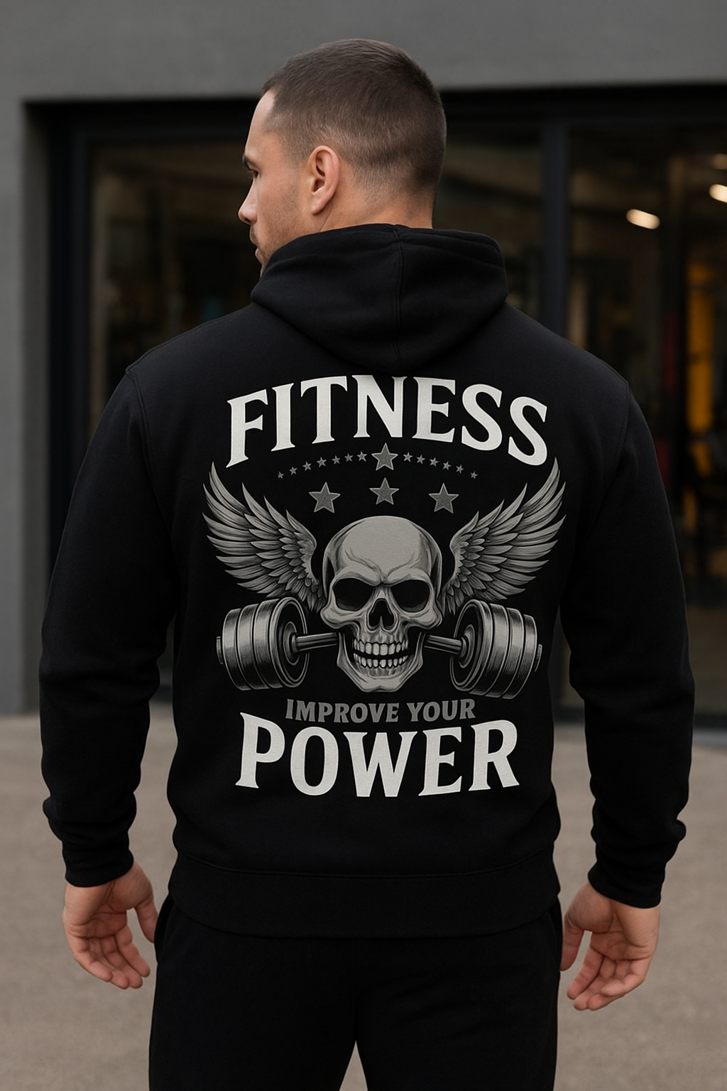 Elevate your workout style with our Men’s Black Fitness Hoodie featuring a bold Skull & Barbell Graphic and “Improve Your Power” slogan. Designed for athletes and gym enthusiasts, this hoodie blends performance, comfort, and durability, making it perfect for training, casual wear, or post-gym recovery.