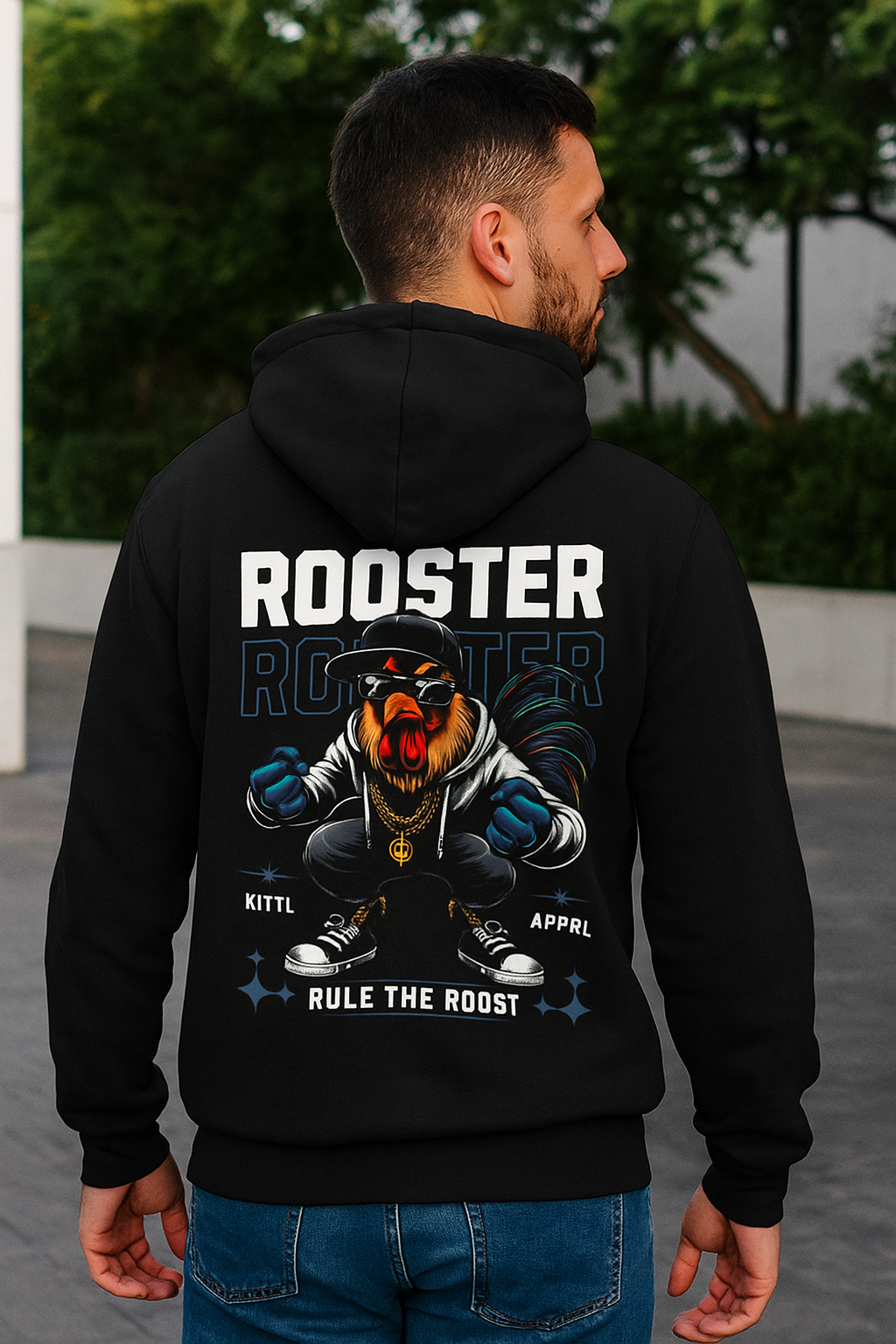 Unleash bold streetwear vibes with our Men’s Black Hoodie featuring the Rooster “Rule the Roost” Graphic Print. Designed for style and comfort, this hoodie is made from a premium cotton-polyester blend, ensuring softness, durability, and a perfect fit.