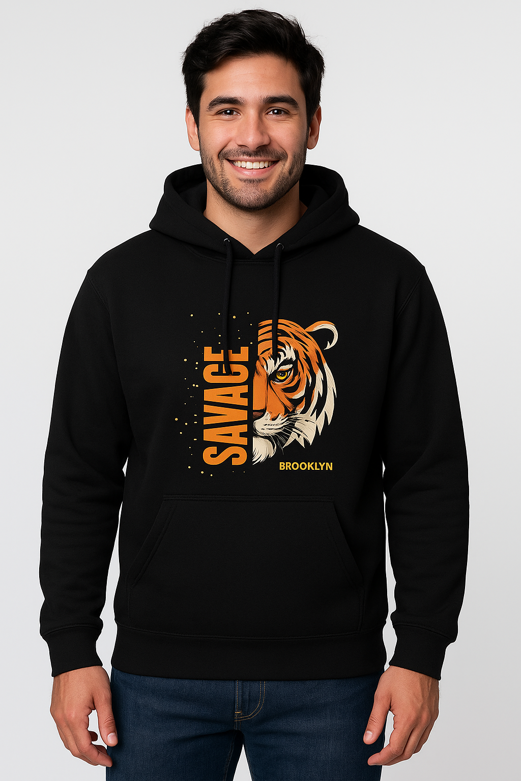 The front design showcases a fierce tiger illustration with the word “SAVAGE”, symbolizing strength, power, and street-style attitude. With vivid, long-lasting print quality, this hoodie is designed to keep its sharp colors and crisp look wash after wash.