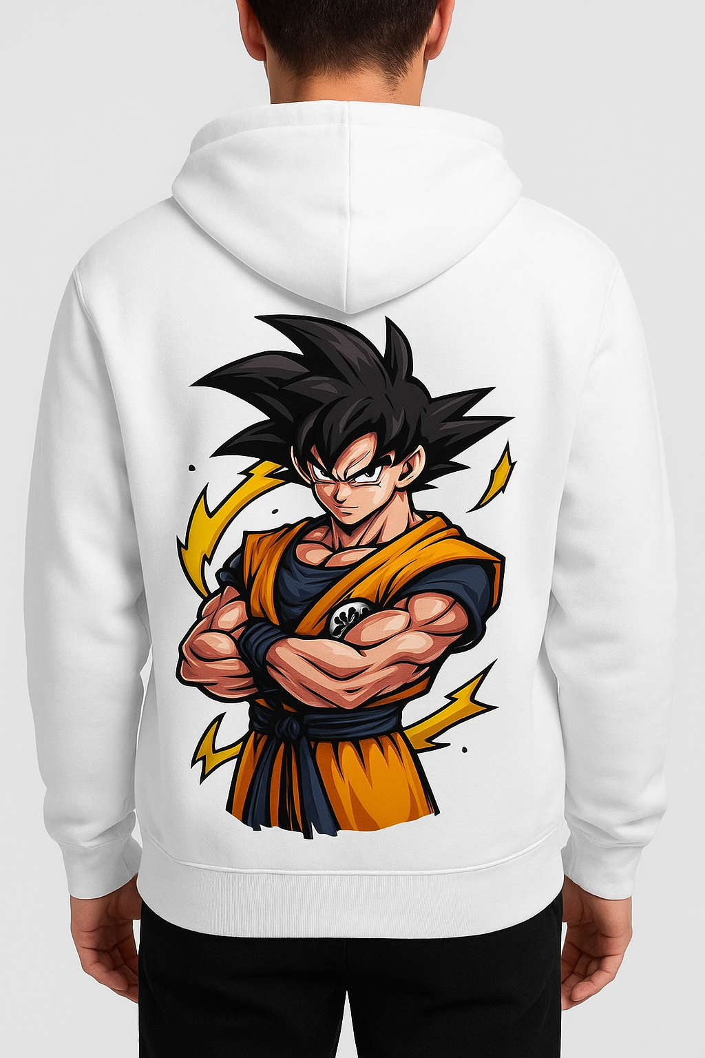 Step into anime style with this white hoodie featuring Goku from Dragon Ball Z. Designed with a vibrant and detailed back print, this hoodie is perfect for anime lovers, gamers, and streetwear enthusiasts.