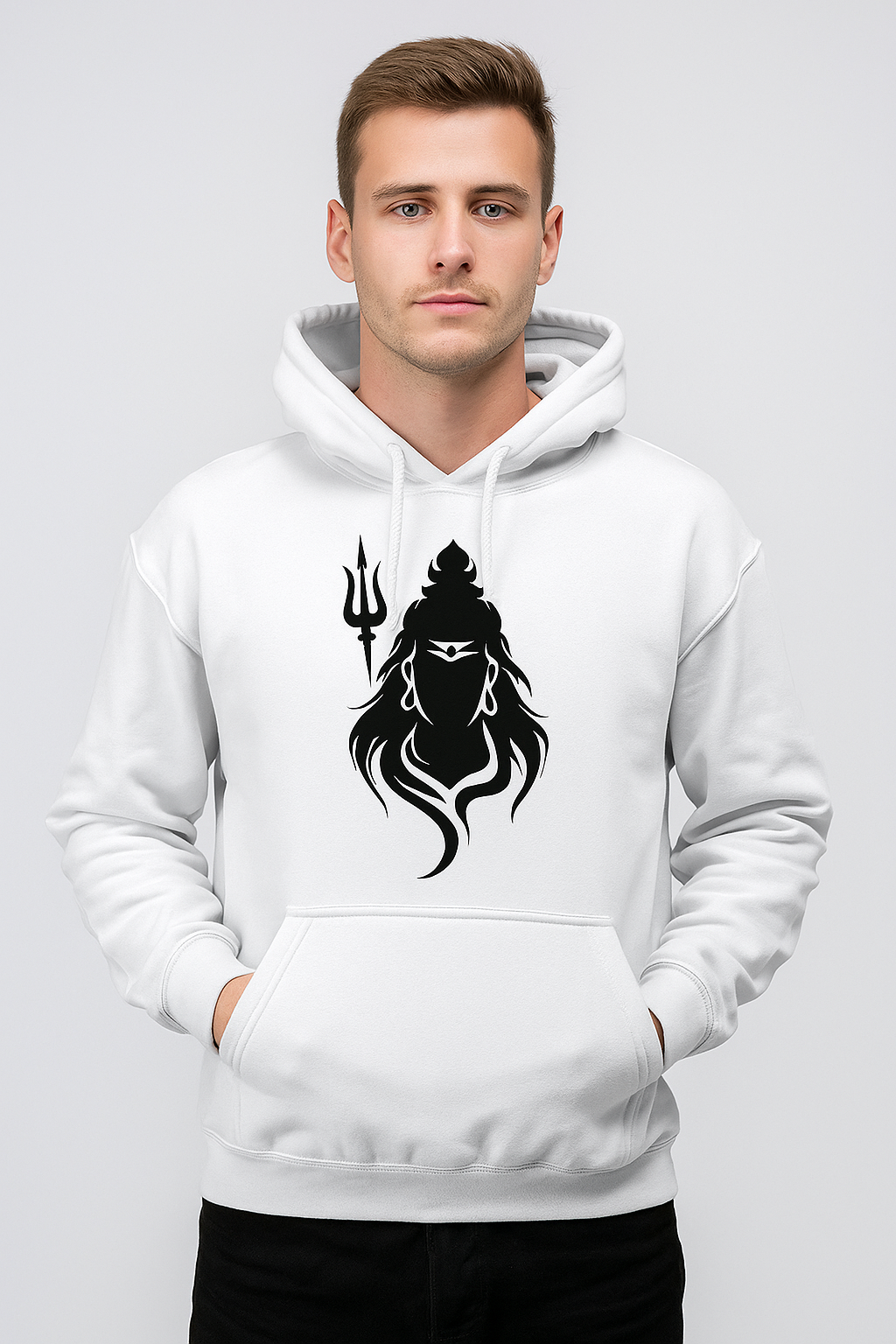 Embrace divine energy with our Shiv Print White Hoodie, designed for comfort, style, and spirituality. Featuring a bold black Lord Shiva silhouette with Trishul, this hoodie is perfect for those who want to carry a touch of devotion with modern streetwear fashion. Made with premium quality fabric, it ensures warmth, durability, and all-day comfort.