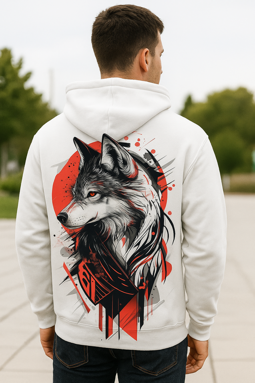 Unleash your inner strength with our Wolf Spirit Hoodie, featuring a striking artistic wolf design on the back. The powerful combination of red, black, and white creates a bold streetwear look that’s both modern and timeless.