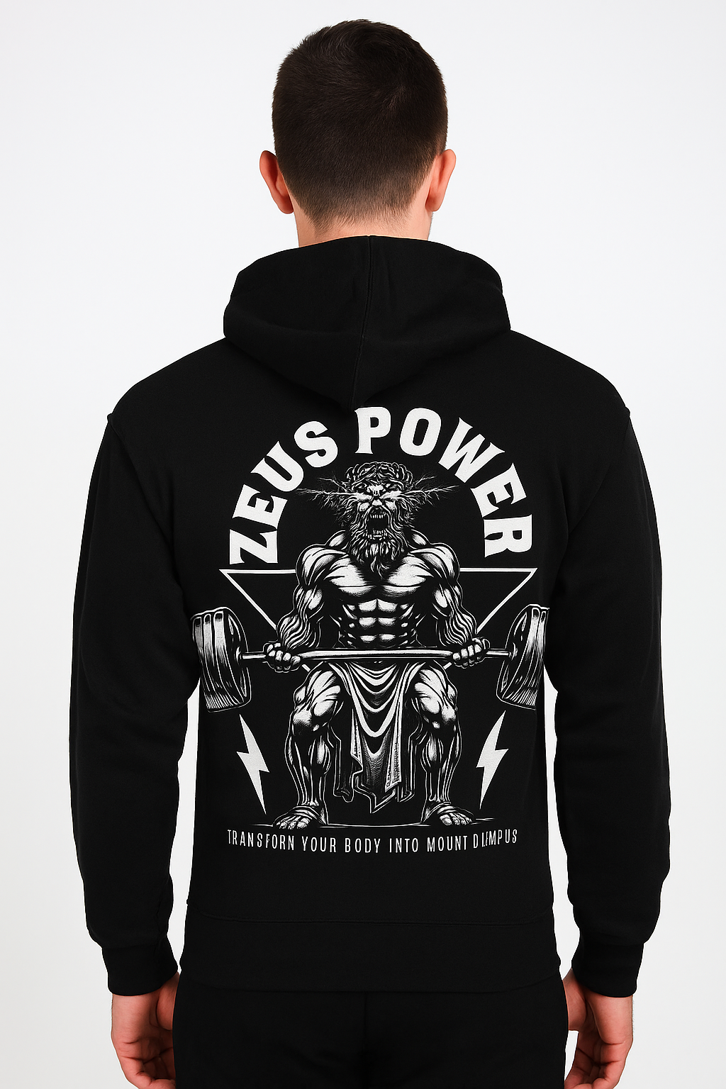 Unleash your inner strength with the Zeus Power Hoodie. Designed for those who live and breathe fitness, this hoodie features a striking graphic of Zeus, the god of thunder, showcasing immense power and energy. The back print captures the spirit of determination and transformation, making it more than just clothing—it’s a statement of strength.
